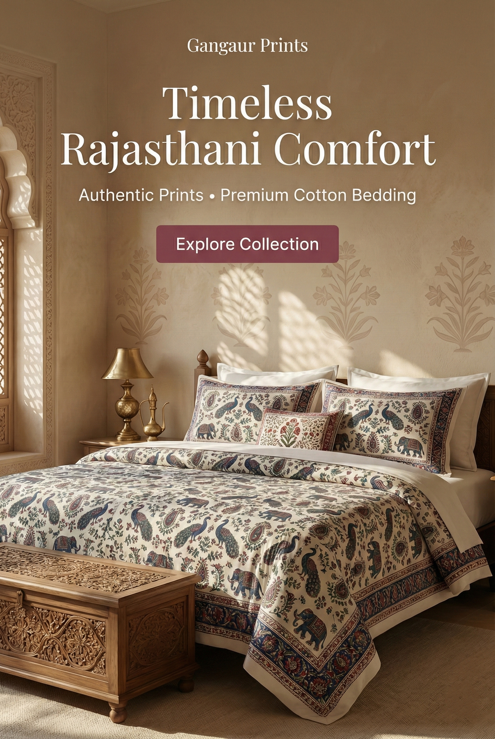Vantara Handblock Inspired King Size Bedsheet Set – Multicolor Rajasthani Ethnic Print